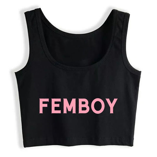 Crop Top Sport I Love Femboy Funny Black Print Tops Women