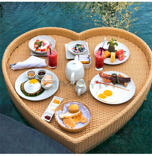 Bali Rattan Tray Swimming Pool Floating Rattan Tray Breakfast Afternoon Tea Dinner Plate Hotel Rattan Basket