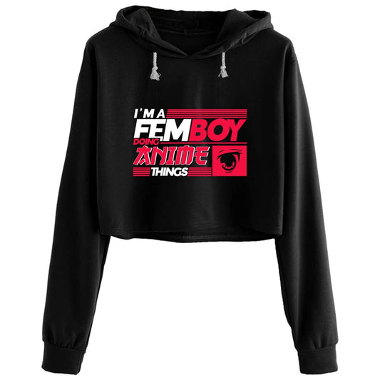 Anime Yaoi Femboy Crop Hoodies Women Harajuku Anime Emo Aesthetic Pullover For Girls